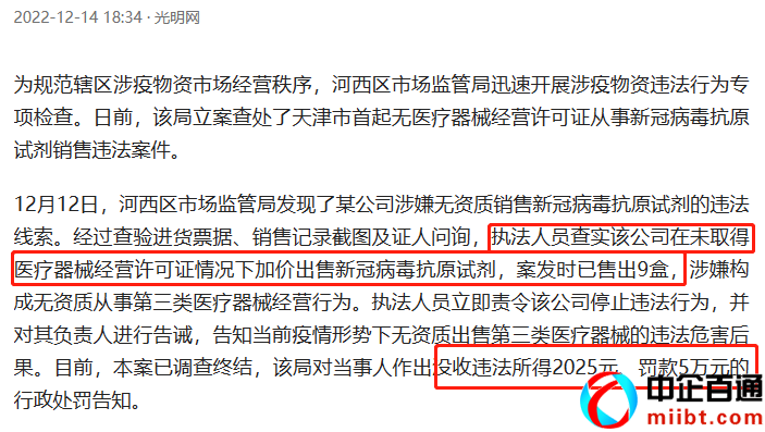 對于想銷售新冠抗原檢測試劑的商家,中企百通建議,辦理了第三類醫(yī)療器械里面的6840類才可以合法銷售新冠抗原檢測試劑。