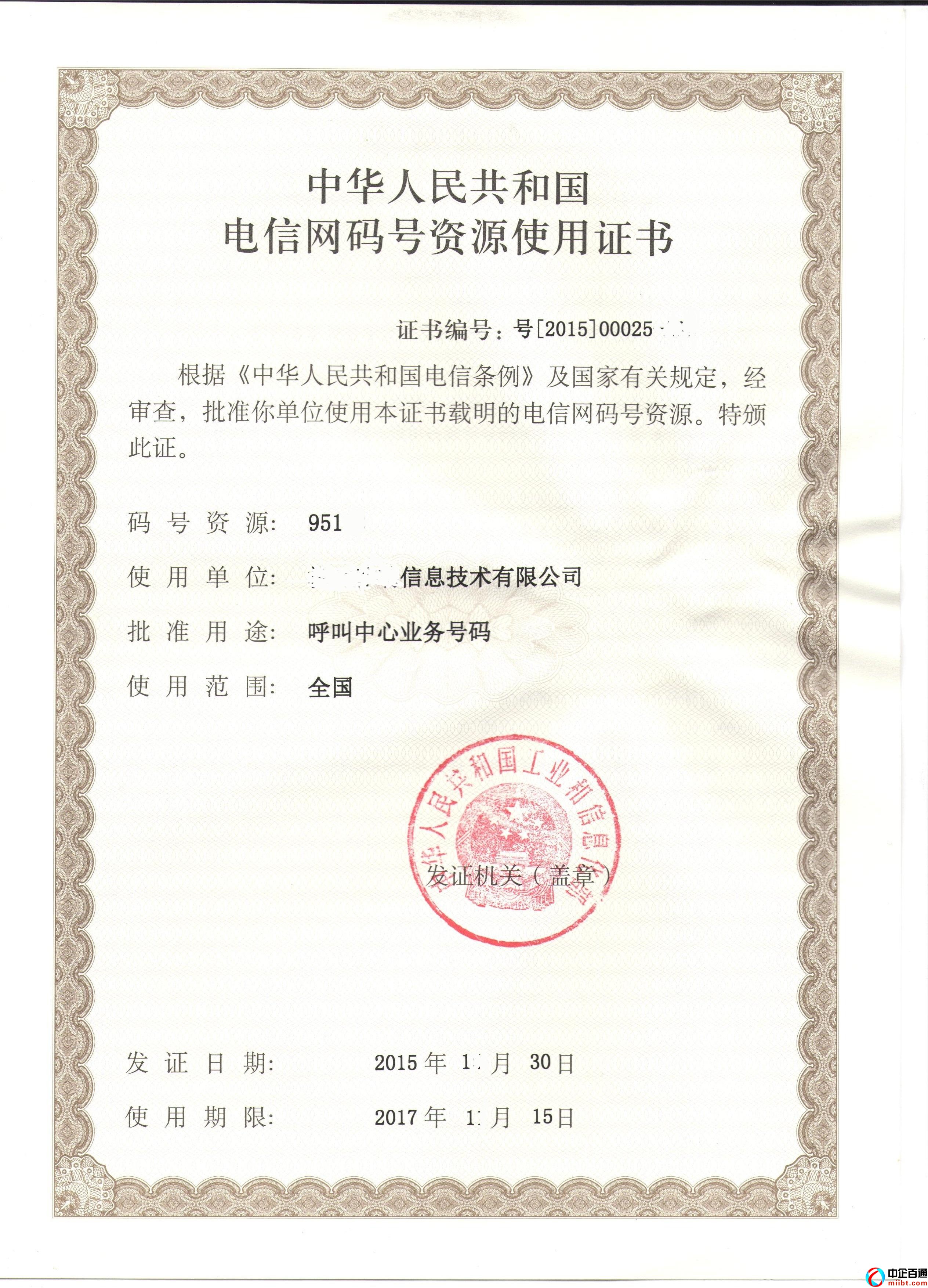3、同時(shí)向工信部申請(qǐng)95電話(huà)號(hào)碼使用證;