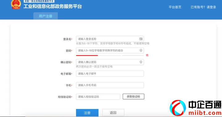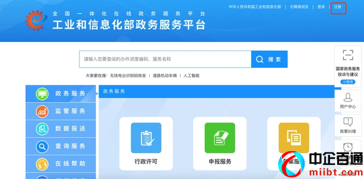 準(zhǔn)備好上述這些材料之后,先去工信部網(wǎng)站(工業(yè)和信息化部政務(wù)服務(wù)平臺(tái))注冊(cè)個(gè)賬號(hào)。