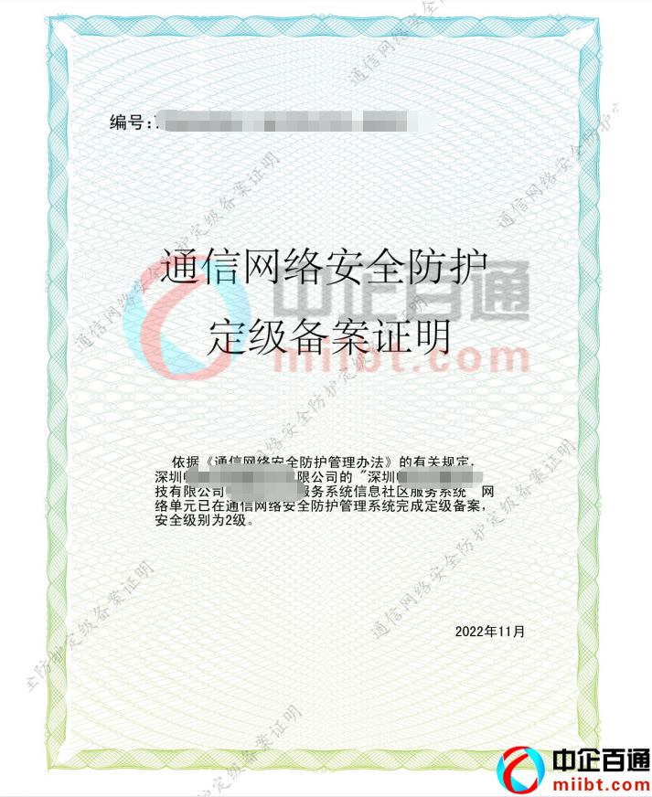 深圳通信網(wǎng)絡(luò)安全防護(hù)定級備案2級2022年11月
