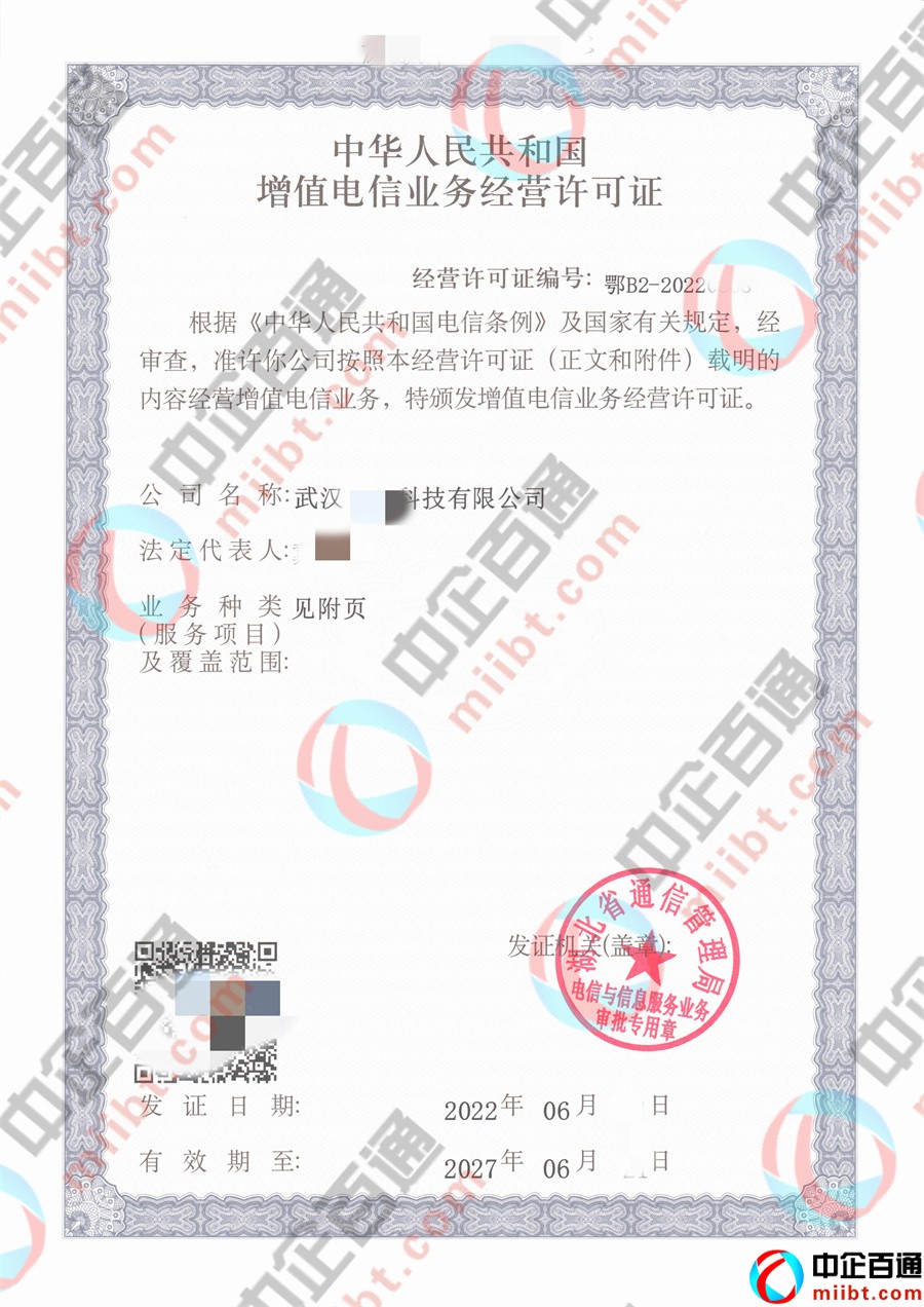 武漢ICP許可證樣本(2022年6月)