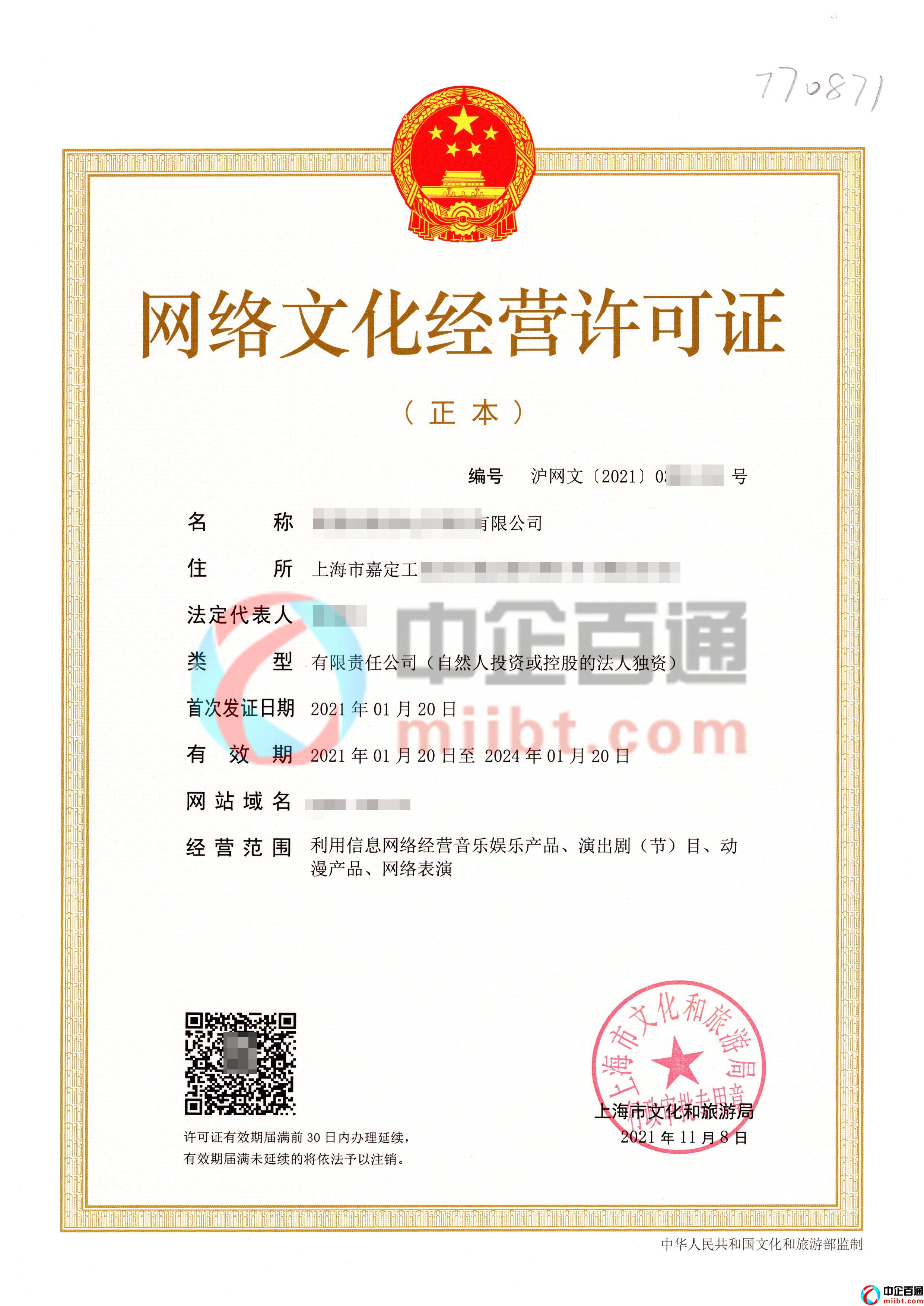 上海直播/音樂/動漫/演出?。ü?jié))目許可證樣本