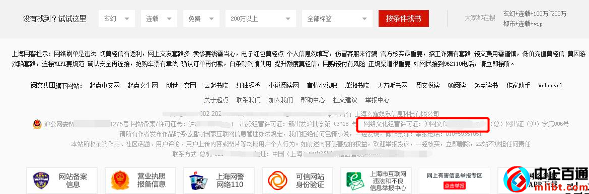 ,這三個網站可以說是小說行業(yè)的上限,所以他們的公司網站也是網絡文化經營許可證,如果有細心的網民也會發(fā)現(xiàn)三家公司除了網絡文化經營許可證和其他互聯(lián)網資格,即增值電信經營許可證,順便說一句,如果公司網站有會員,付費信息發(fā)布,商業(yè)網站需要申請增值電信業(yè)務經營許可證