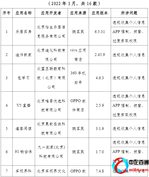 2022年2月25日,我局公開通報(bào)了65款存在侵害用戶權(quán)益問題的APP,截至通報(bào)規(guī)定時(shí)限,經(jīng)核查復(fù)檢,尚有16款A(yù)PP未按照要求完成整改(詳見附件)。為嚴(yán)肅處理上述APP的違規(guī)行為,我局通知本市主要應(yīng)用商店予以下架,并報(bào)請工業(yè)和信息化部在全國范圍進(jìn)行下架處理。相關(guān)應(yīng)用商店應(yīng)立即組織對名單中的APP進(jìn)行下架處理,并舉一反三,認(rèn)真系統(tǒng)排查反復(fù)出現(xiàn)問題的APP開發(fā)運(yùn)營者,嚴(yán)格落實(shí)分發(fā)平臺主體責(zé)任,把好上架審核關(guān)。