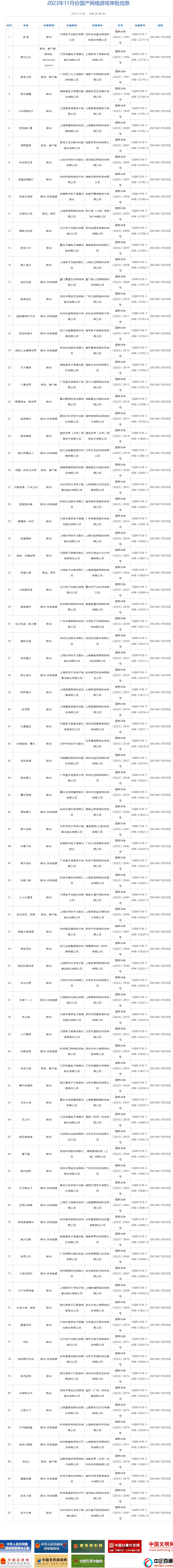 12月4日,國家新聞出版署公布了11月國產(chǎn)游戲網(wǎng)絡(luò)審批信息,共有87款游戲獲得版號。